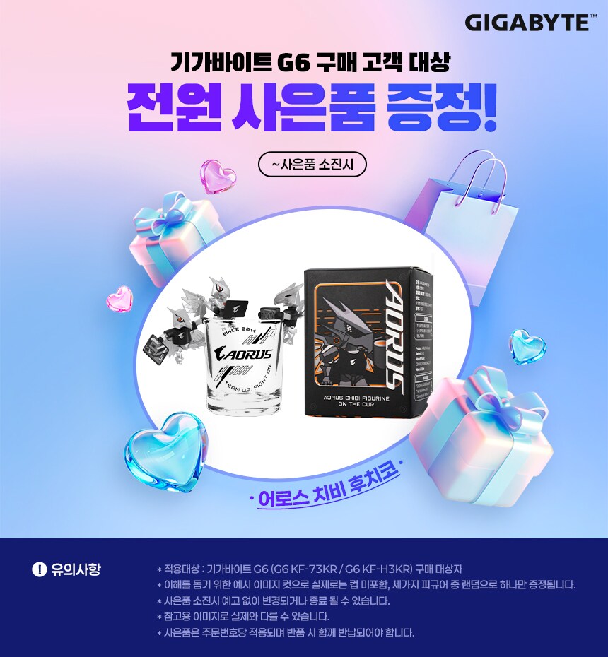 이번에 소개해드릴 기가바이트 게이밍 A16이랑 G6 KF 모델을 구매시 1:1 사은품을 증정하는 이벤트를 진행하고 있습니다!