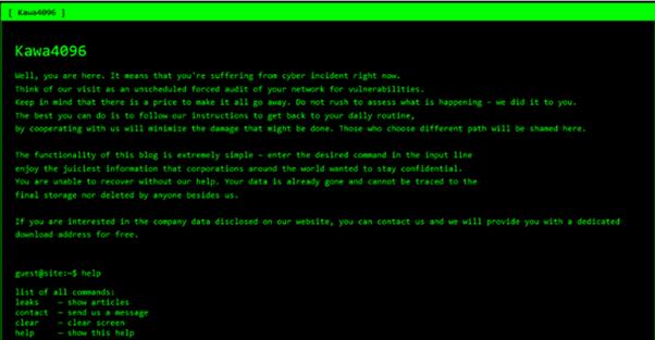 [그림 1] Kawa4096 랜섬웨어의 데이터 유출 사이트
