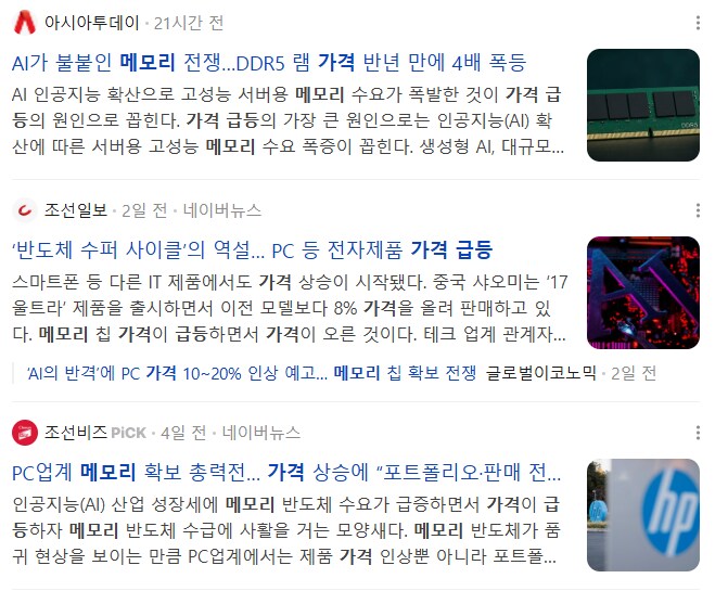 메모리 가격 상승은 이미 시작되었고, 단기간에 끝날 가능성은 크지 않습니다.