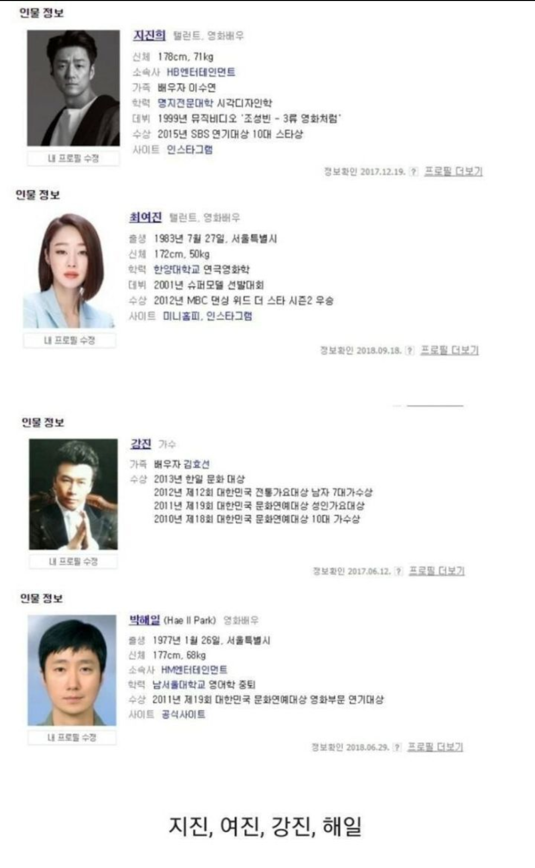 일본이 싫어하는 우리나라 연예인 4대천왕