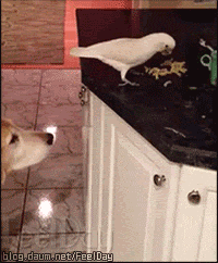 댕댕이 간식 주는 앵무새