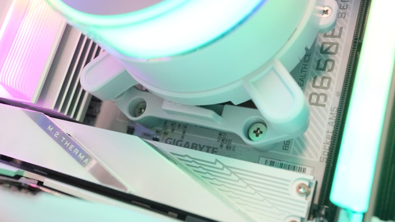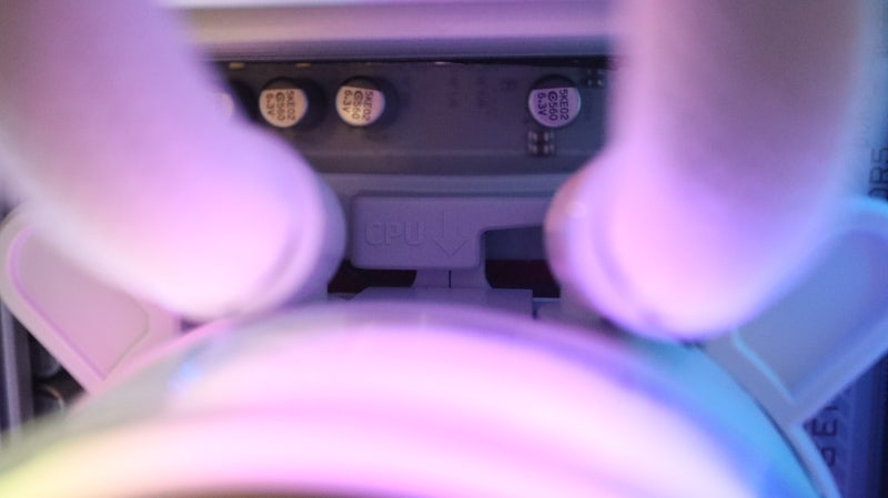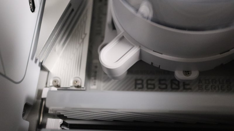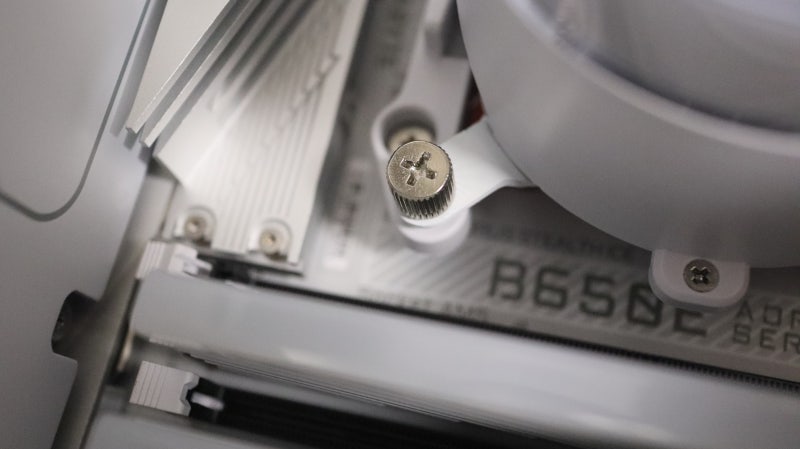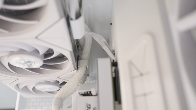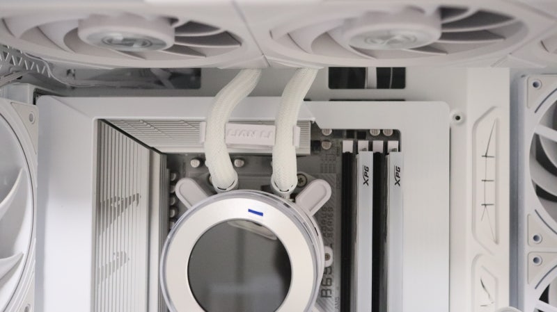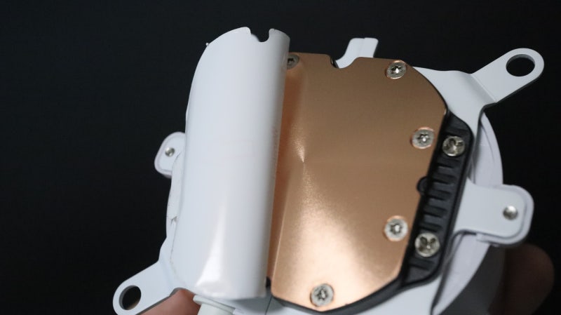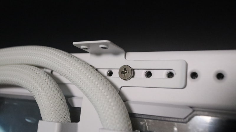 라디에이터도 묵직하고 큰 편이라 제가 리뷰에 사용한 케이스처럼 라디에이터 장착부 뒤쪽의 공간이 여유 있는 케이스라면 더욱 편하게 조립할 수 있습니다. 만약 공간이 부족하다면 라디에이터 후면의 튜브 브라켓을 일부 제거하거나 조정하는 다소 번거로운 과정이 필요합니다.