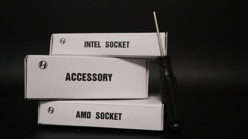 제품 설치에 앞서, 쿨러 본체 외에 동봉된 구성품들을 살펴보겠습니다. 이번 시리즈 제품의 악세살리 패키지는 독특하게 AMD/인텔 플랫폼 별 펌프헤드 장착 패키지가 구분되어 있습니다.