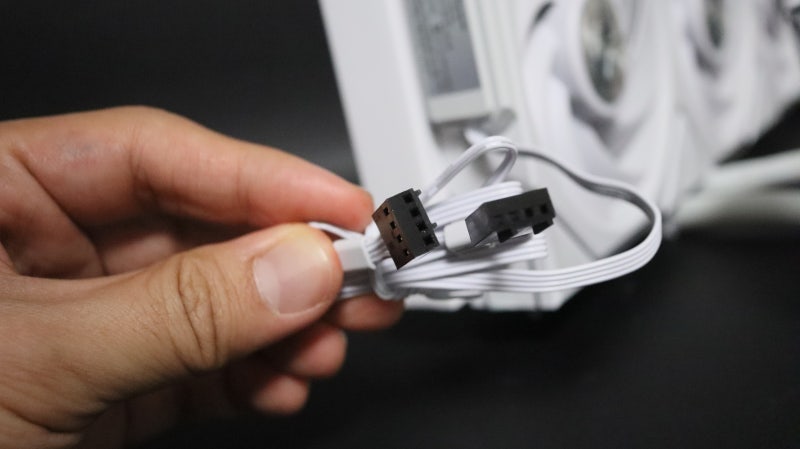 그리고 이 튜브 바로 옆에는, 펌프의 속도, ARGB LED, LCD의 제어를 담당하는 연결부가 밀집되어 있습니다.