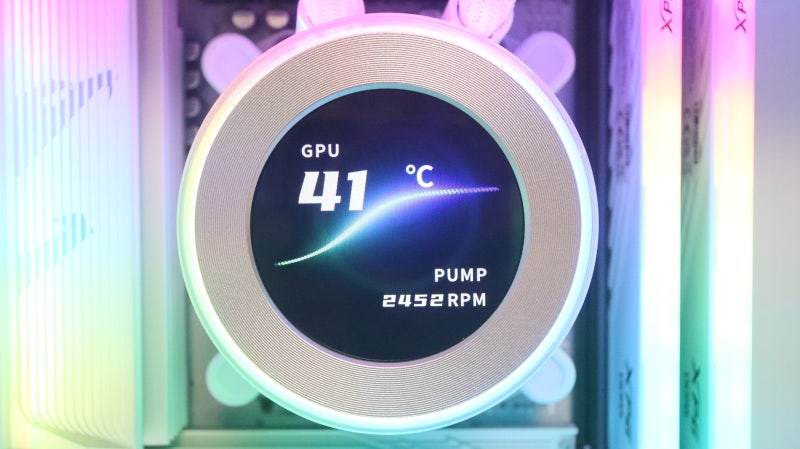 두 번째로 살펴볼 부분은 큼직한 원형 LCD가 탑재된 펌프 헤드입니다. 후에 별도의 챕터를 통해 설명드리겠지만, 리안리의 기존 LCD 탑재 시리즈들 대비 훨씬 더 매력적이고 다양한 디스플레이 프리셋과 효과 옵션들을 제공하죠.