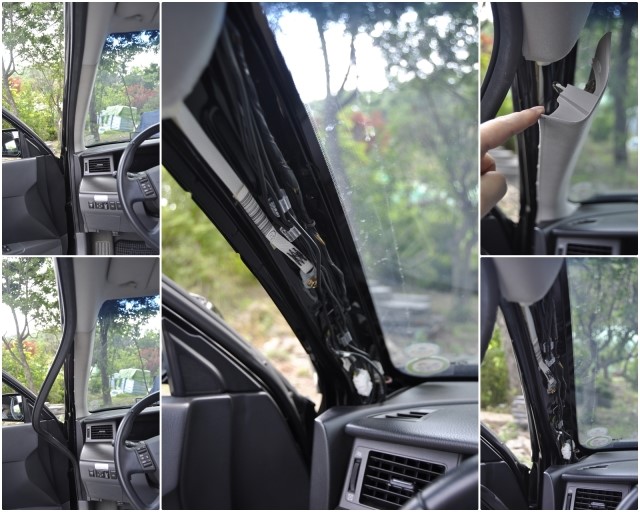 약간의 힘을 주면 빠지게 된다. A필러 내부로 보이는 각종 배선들이 보이긴 하지만, 기존에 다른 용도로 배선이 되어