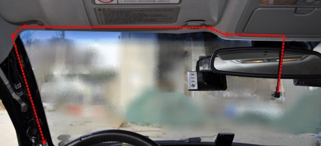 전방카메라의 경우에는 룸미러 뒷편의 정 중앙에 위치를 하도록 하면서 최대한 운전자의 시야를 방해하지 않도록