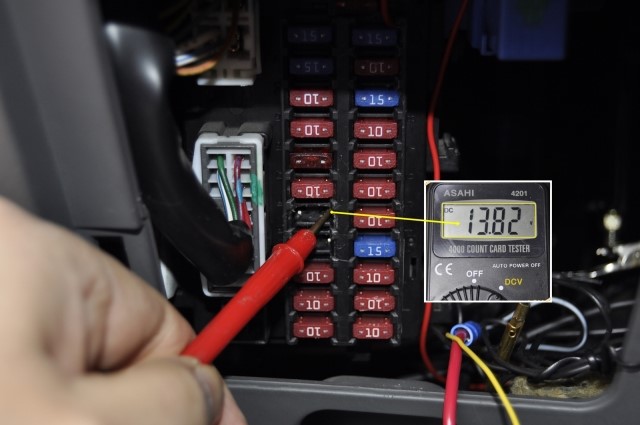 테스터기로 찍어 보니 퓨즈홀더의 오른쪽에서 전압이 측정되는 것을 확인할 수 있었다.