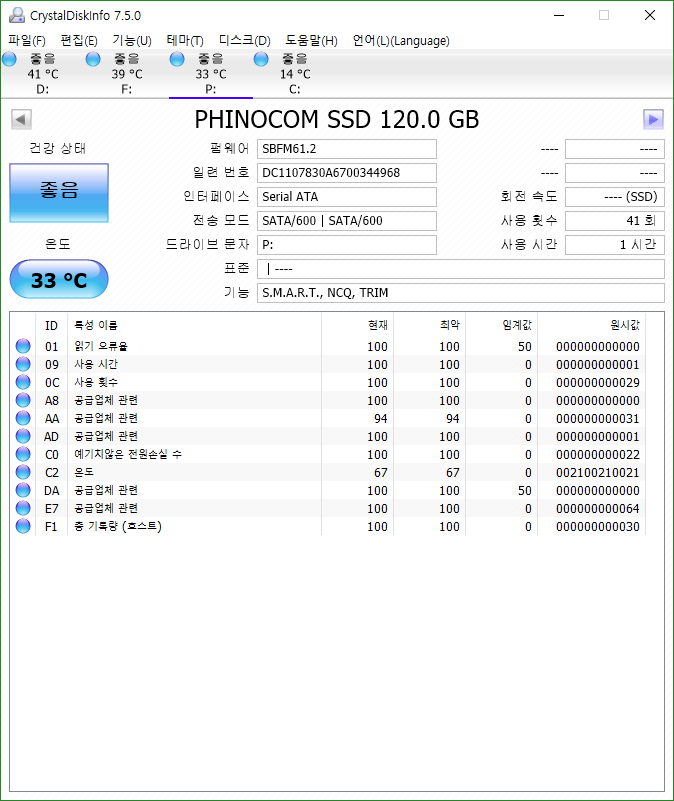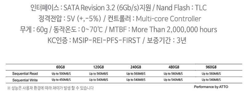 ■ PHINOCOM Zenon First 120GB SSD 스펙