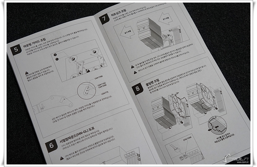장착용 악세사리, 써멀구리스, 메뉴얼이 기본 구성품 입니다.
