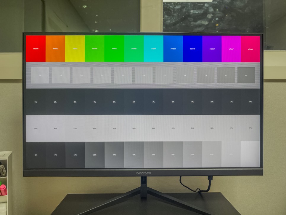 모니터 테스트 사이트를 통해 다양한 테스트를 진행했는데요. sRGB 100% 지원의 성능답게 컬러와 화이트/블랙 밸런스 모두 뛰어났습니다. P2700F는 안티글레어 처리된 IPS 패널을 사용한 모니터인데, 다른 IPS 패널과 다르게 더욱 쨍하고 생생한 화면 표현이 일품이었습니다.