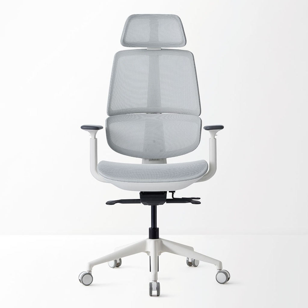 헤드레스트 역시 전면 메쉬로 이루어져있으며, 목/머리를 안정적으로 받쳐줍니다. 사용자 체형에 맞춰 편하게 사무용의자를 사용할 수 있도록 2단계 각도조절, 높이 조절까지 자유롭게 가능한데요.