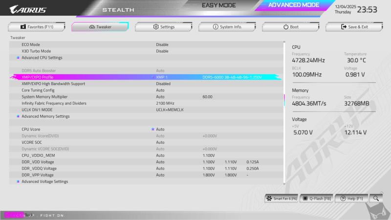 XMP와 EXPO 설정 각각 AMD, INTEL 시스템에서 모두 정상적으로 잘 작동했으며 바이오스를 통해 원클릭 적용이 가능했습니다. 총 3개의 보드에서 테스트 해 봤는데 호환성의 문제 없이 동작 및 ARGB 제어가 가능했습니다.