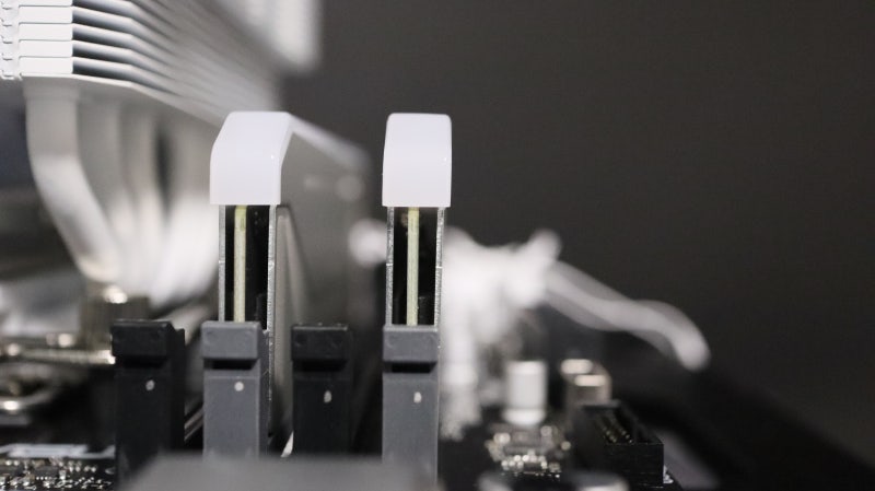 메인보드에 장착해 본 모습입니다. 실버 색상의 방열판 덕분에 화이트 뿐 아니라 블랙 시스템에 매칭시켜도 이질감 없이 잘 어울릴 수 있습니다.