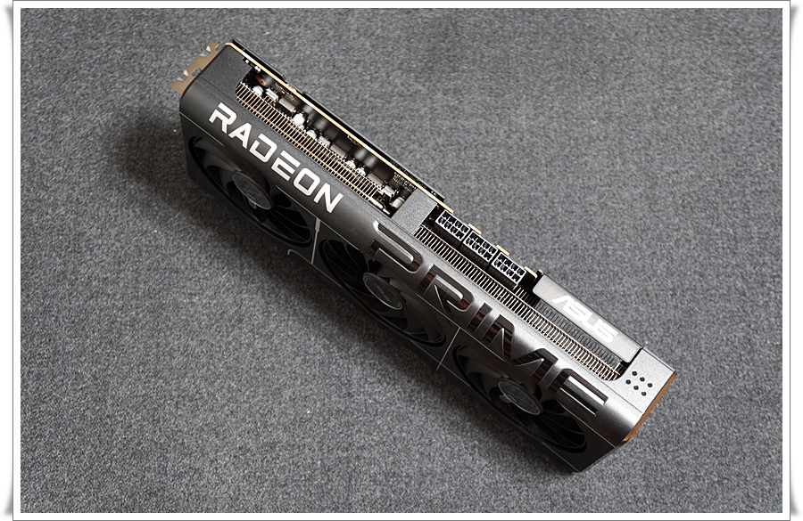 ASUS PRIME 라데온 RX 9070 XT OC D6 16GB 제품의 전체적인 디자인 입니다.