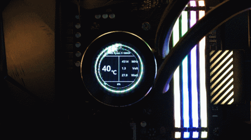 전용 어플을 통해 IPS 디스플레이에 보여질 화면을 커스터마이징 할 수 있기 때문에 워터펌프에는 USB케이블과 3핀의 전원케이블이 연결되어 있습니다. 3핀 케이블은 메인보드의 CPU_FAN 등의 4핀 커넥터에 홈을 맞춰 연결하면 됩니다.