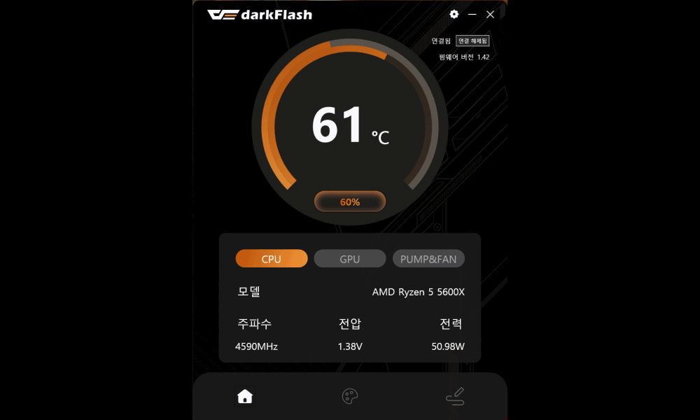 다크플래쉬 DN-360S는 기본적으로 6가지 테마가 준비되어 있으며 1680만 색상의 풀컬러를 지원해 화려한 시각 효과를 즐길 수 있습니다. 개인적으로 PC를 책상 위에 올려놓고 사용할 때 팬이 갑자기 빨리 돌면 CPU 온도가 궁금할 때가 있는데 DN-360S는 직관적으로 온도를 확인할 수 있어 매우 편리합니다.