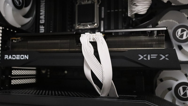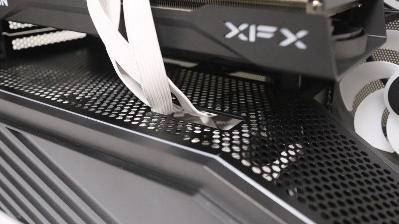 그래픽카드용 8핀 케이블의 경우 측면으로 배치하기엔 공간이 많이 협소하기 때문에 이렇게 카드 하단을 통과해 연결하는 것을 추천합니다.