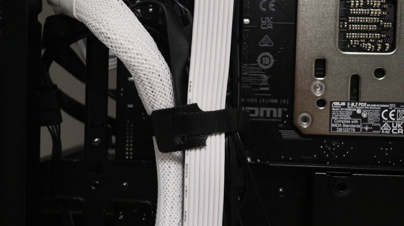 선 정리를 도울 벨크로 타이와 같은 액세서리들도 충분히 제공됩니다. 다만 케이스 팬이 케이블을 획기적으로 줄이는 직렬연결 방식이 아닌 점은 역시 원가 절감을 위한 선택이 되겠죠. 기본 케이블과 커넥터가 많아 꼼꼼한 선 정리가 필요합니다.