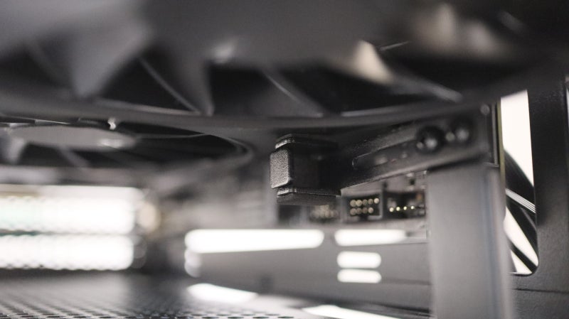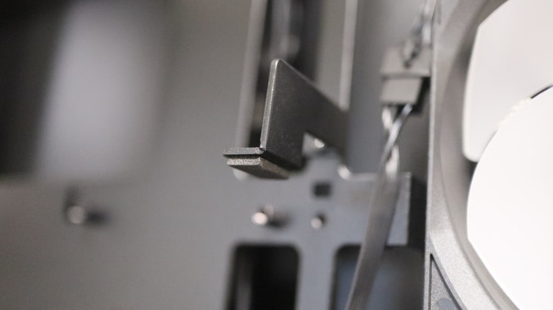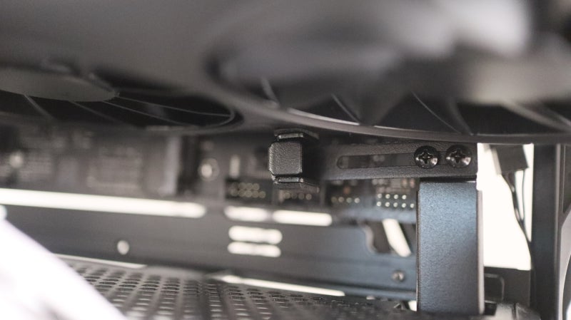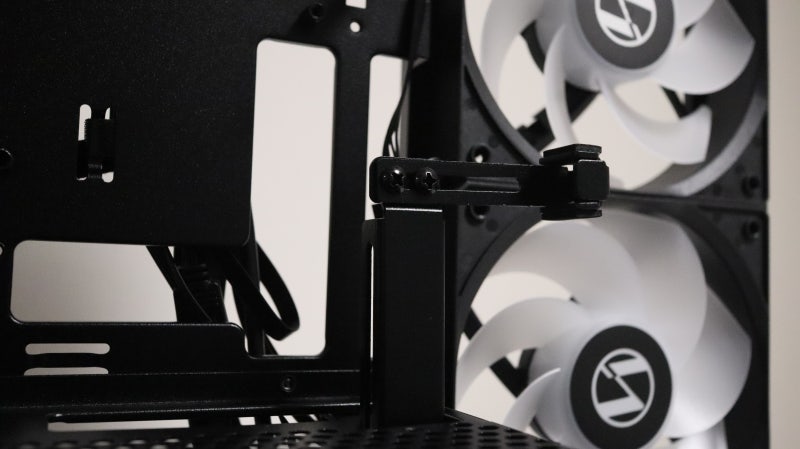 그래픽카드와 직접 맞닿는 지지대의 방향과 위치도 나사 두개를 풀어내면 꽤 큰 범위에서 조정이 가능해서 다양한 크기와 구조의 그래픽카드도 팬 간섭 걱정 없이 지지할 수 있습니다.