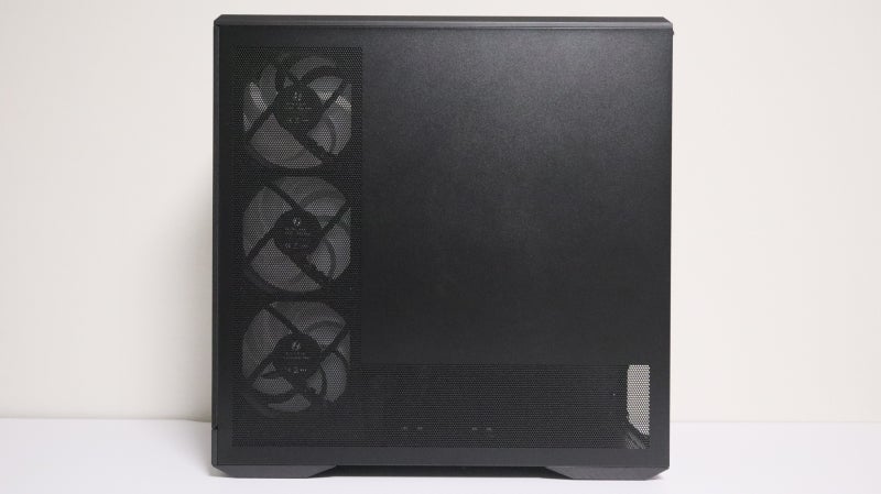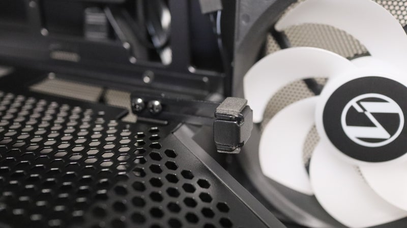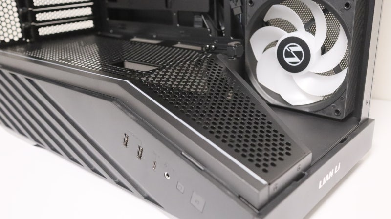 상단에는 플라스틱 커버와 촘촘한 메시 통풍 구조가 적용되어 있으며 최대 280 또는 360 규격의 수랭 쿨러까지 장착이 가능한데