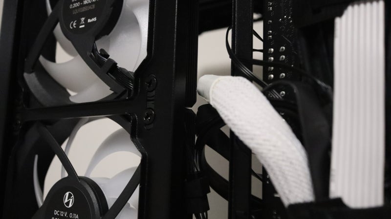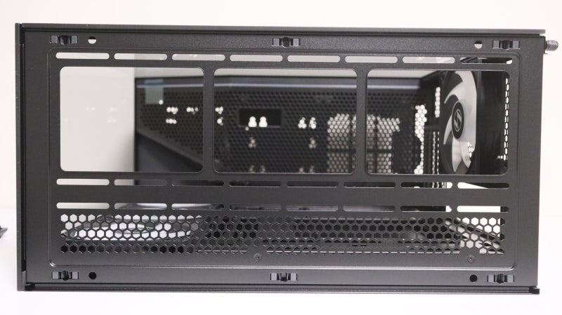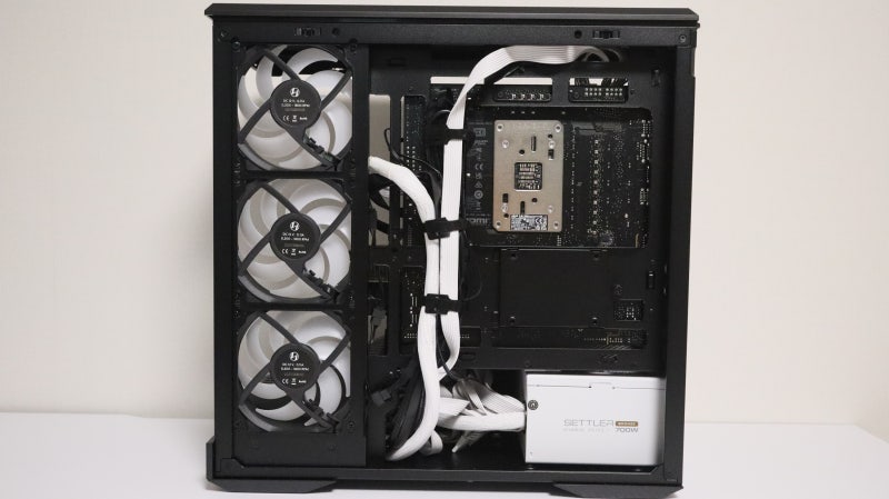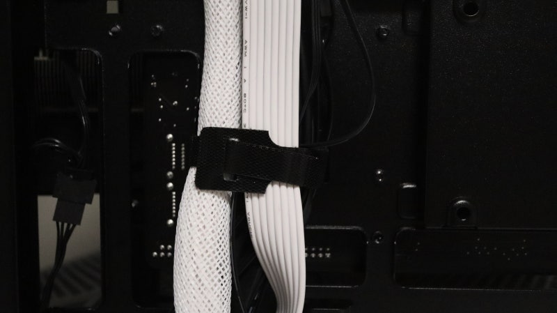 케이스를 슬림 하게 구성하다 보니 이 케이블 정리 공간이 여타 리안리의 형제들보다는 좁은 편입니다. 깔끔한 선 정리 모습을 완성할 케이블 홀 그로멧도 없고요. 따라서 선 정리에 신경을 써서 꼼꼼하게 방향을 잡고 타이를 잘 활용해 주어야 외관이 깔끔하게 마무리 될 수 있고 결정적으로 측면 커버를 안전하게 닫을 수 있습니다.