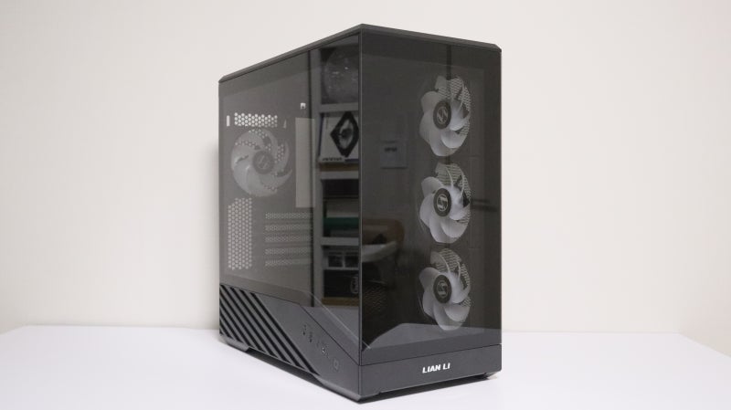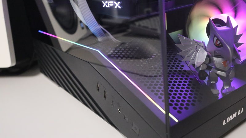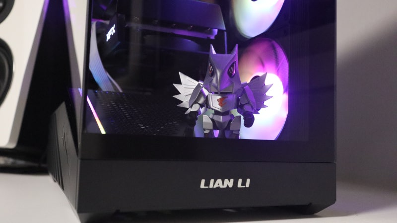 정면에 피규어를 배치하면 이런 느낌도 연출 가능하죠. 정면 프레임에는 LIAN LI 로고가 심플하게 배치되어 있습니다.