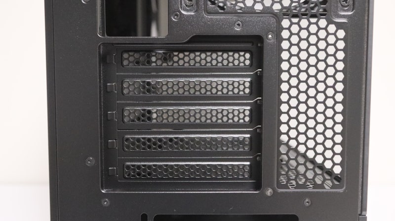 기본으로 장착된 쿨링팬도 흡기(리버스) 3개와 배기 1개로 충분한 구성입니다. 다만 케이블 정리 시 깔끔함을 더하는 그로멧이 모두 빠져있는 부분은 가격을 낮추기 위한 노력으로 보입니다.