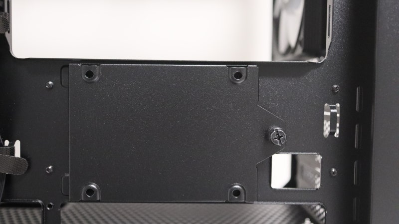 파워서플라이 앞쪽, 케이스 하단 깊숙한 공간에도 같은 방식으로 2.5인치 또는 3.5인치 저장장치를 배치하는것이 가능합니다.