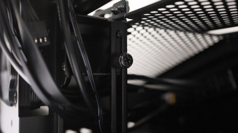 이 그래픽카드 지지대는 케이스의 작은 크기 때문에 접근이 쉽지는 않지만 파워서플라이 챔버쪽의 손나사를 사용해 높이를 쉽게 조절하고 고정할 수 있으며