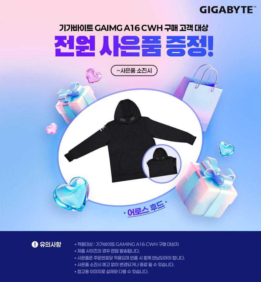 현재 기가바이트 공식 유통 혜택으로, 노트북 구매 고객 전원에게 특별 사은품을 100% 증정하는 이벤트가 진행 중이에요.