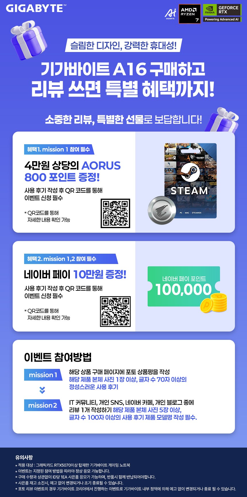 게이밍 노트북 구매 후 조건에 맞게 포토 리뷰만 작성해 주시면 최대 네이버페이 10만 원을 받을 수 있습니다!