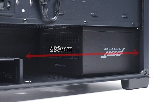 파워서플라이는 케이스 아래 공간에 장차하며, 최대 230mm 길이의 표준 ATX 규격 PSU를 지원한다. 최근 고출력·대형 파워서플라이가 늘어나는 흐름을 고려하면 이 여유 공간은 하이엔드 시스템을 구성하는 사용자에게 충분한 호환성을 제공하는 요소다. 내부 여유가 넉넉해 케이블 배선 부담도 적고, 위쪽과 분리된 구조 덕분에 메인 챔버 공기 흐름을 방해하지 않는 장점도 있다.