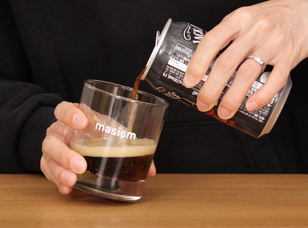 우선 잭다니엘 코카콜라를 살펴보자. 도수는 5%, 국내에 출시된 것은 코카콜라 제로 버전이다. 사실 왜 구분이 있을까 싶을 정도로 오리지널도 제로도 끝맛의 차이가 덜하다(위스키 향이 나니까). 다만 제로 버전이 마실 때 훨씬 가벼운 느낌이다.
