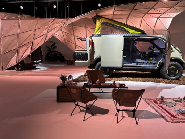 전시 구조물 내부에는 기아의 차세대 PBV(Purpose Built Vehicle) 모델인 ‘PV5’ 차량 2대가 전시됐으며, 이와 함께 헬리녹스의 체어와 텐트도 설치돼 다양한 환경에서의 실용성과 적응성을 보여줬다. 특히 헬리녹스 제품은 도시 공간과 야외 환경을 넘나드는 이동성과 활용성 측면에서 ‘PV5’ 차량의 철학을 뒷받침하는 역할을 했다.