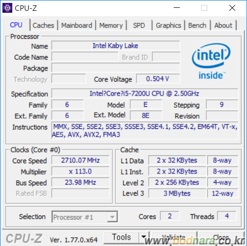 보드나라에서도 인텔 카비레이크 샘플을 어렵게 구할 수 있었는데, 인텔 코어 i5-7200U는 데스크탑 프로세서가 아닌 모바일(노트북, 미니PC) 플랫폼용으로 출시되는 저전력 모델이다. 카비레이크는 LGA 1151 소켓을 사용하고 새로운 200 시리즈 외에 기존 100 시리즈 메인보드 칩셋과도 호환되는데, 보드나라가 입수한 샘플도 기존 100 시리즈 플랫폼에 카비레이크 프로세서를 얹은 것으로 나온다.