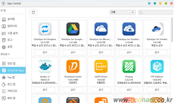 앱 센트럴에서 여러 가지 NAS 앱 제공