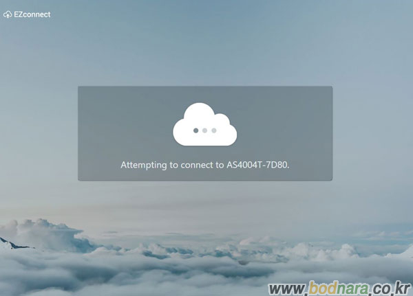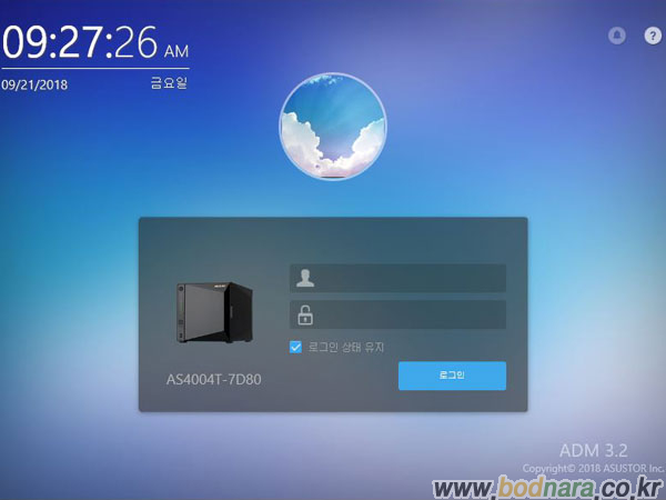 인터넷 접속이 가능한 PC에서 웹 브라우저 주소창에 이지커넥트 URL을 입력하면 위와 같은 화면이 나타나고 잠시 뒤 ADM 3.2 접속 화면이 표시 된다. 사용자의 아수스토어 NAS ID와 비밀번호를 입력하면 ADM 3.2 기본 화면이 나타나므로 원격으로도 NAS를 관리하고 파일에 접근할 수 있다.