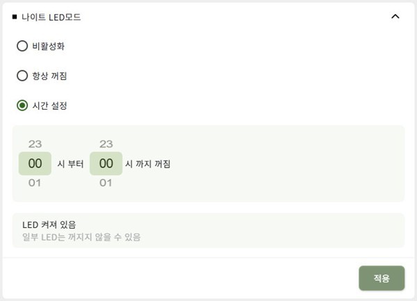 물론 LED는 관리자 메뉴에서 제어가 가능하다. LED를 완전히 끄는 기능은 물론, 시간대별 점등 여부를 설정할 수 있다. 수면에 방해가 되지 않도록 야간에는 자동으로 꺼지게 할 수 있다. 공유기를 거실·침실처럼 눈에 잘 띄는 장소에 설치하는 경우 특히 유용한 기능이다