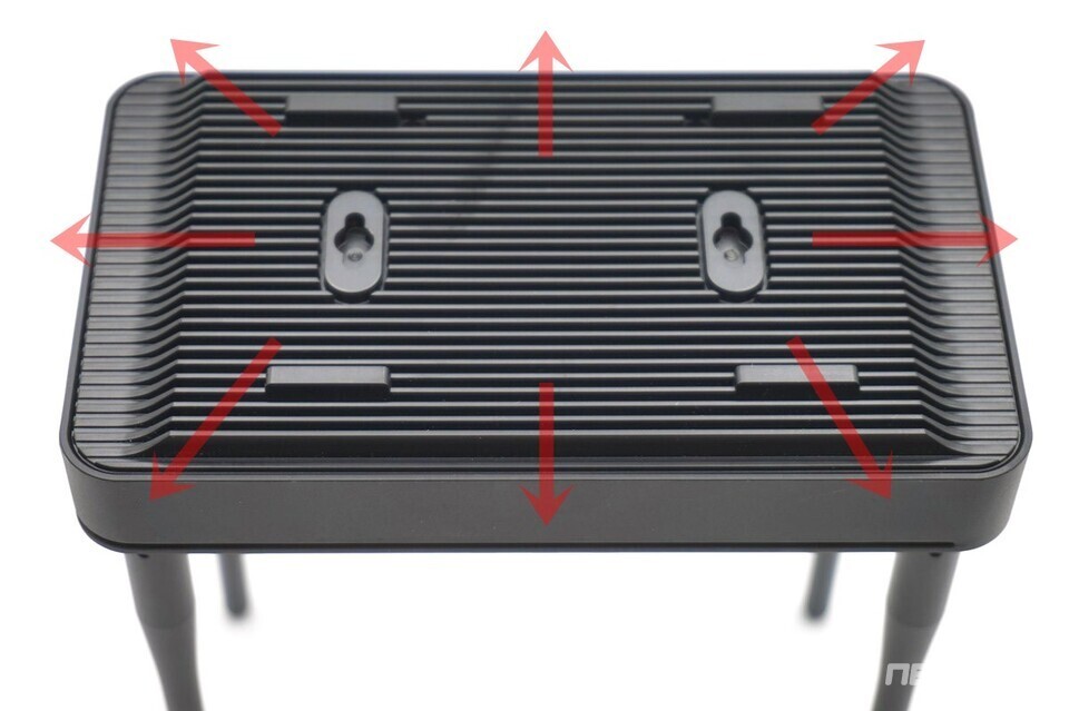 한편 제품 하단에는 두 개의 키홀(Key-Hole) 홀이 마련돼 있어, 별도 브래킷 없이도 벽에 안정적으로 고정할 수 있다. 바닥면 전체가 공기 흐름을 고려한 리브 구조로 되어 있어 발열 문제를 고민하지 않아도 된다.