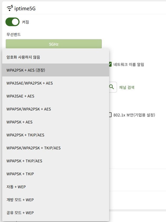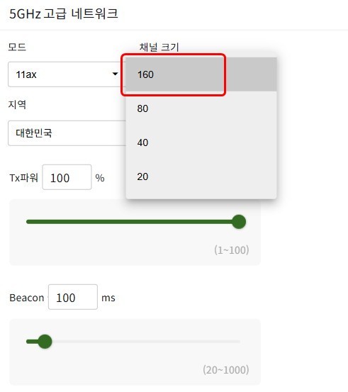 5GHz는최대 160MHz 채널폭을 지원한다.