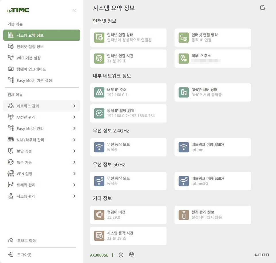 ipTIME AX3000SE의 VPN 기능은 별도의 복잡한 소프트웨어 설치 없이 공유기의 관리 페이지에서 손쉽게 설정할 수 있으며, PC뿐 아니라 스마트폰으로도 동일하게 VPN 사용이 가능하다. 즉, 단순히 무선 속도만 빠른 공유기가 아니라, 외부에서도 안전하게 사내망이나 가정망에 접속할 수 있는 ‘개인 VPN 허브’ 역할까지 수행하는 네트워크 장비로 볼 수 있다.