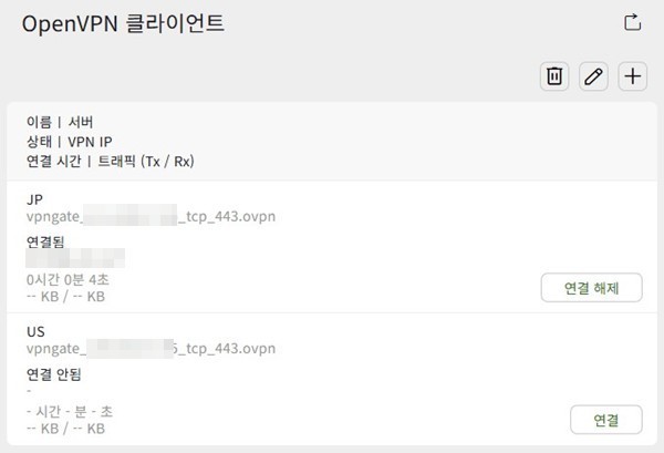 OpenVPN 클라이언트 설정 화면