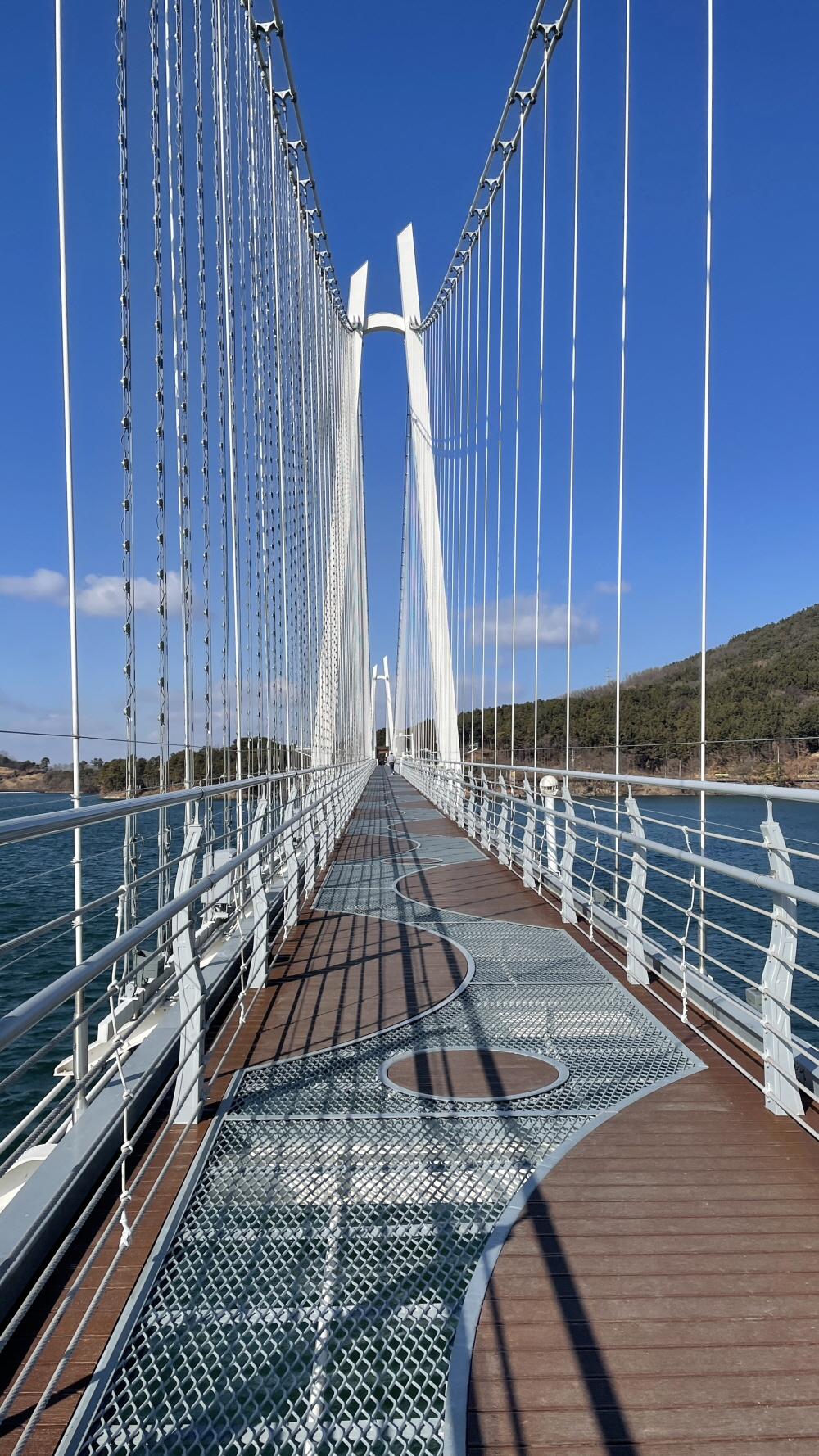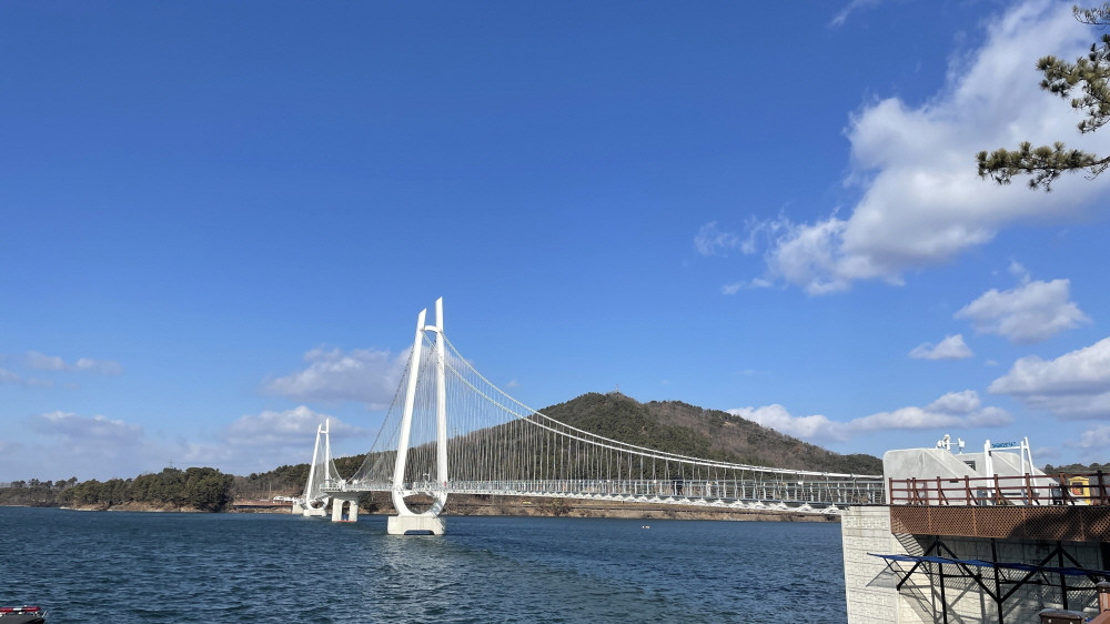 호수를 가로질러 놓인 다리는 마치 넓게 펼쳐진 하얀 돛처럼 보인다. 한 걸음씩 내딛을 때마다 푸른 호수 위를 걷는 것처럼 마음이 들뜨고 설렌다. 바닥은 나무 덱과 철 그물이 지그재그로 이뤄져 있다. 작은 구멍 사이로 푸른 물결이 내려다보이며 때론 아찔하게 느껴지기도 한다. 다리 중간에는 휴양지 느낌이 물씬한 휴식 공간이 마련되어 있다. 이곳에 앉아 호수를 둘러싼 서정에 빠져 있다 보면 시간 가는 줄 모른다. 호수 둘레에 조성된 수변 데크 길을 함께 즐겨도 좋다. 호숫가에 세워진 전망 좋은 카페에서 여유로운 시간도 보낼 수 있다.