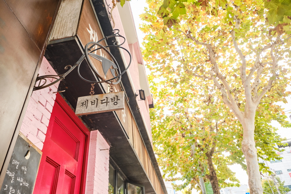 이름은 ‘다방’이지만 혼술을 즐기는 이들에게는 이보다 좋은 공간이 없다. 1층 홀 바닥에 구멍을 뚫어 지하 무대에서 펼쳐지는 라이브 공연을 내려다볼 수 있다. 한낮의 지하 벽면에는 만화책이 가득해 커피 한 잔 마시며 세월아 네월아 시간을 보내기 제격. 가래떡과 커피를 곁들이면 시간 가는 줄 모른다. ‘제비’는 시인 이상이 종로구에서 운영했던 다방 이름에서 따왔다. 카페 곳곳, 심지어 머그컵 바닥에도 시인 이상에 대한 이야기와 아이디어가 가득하다.