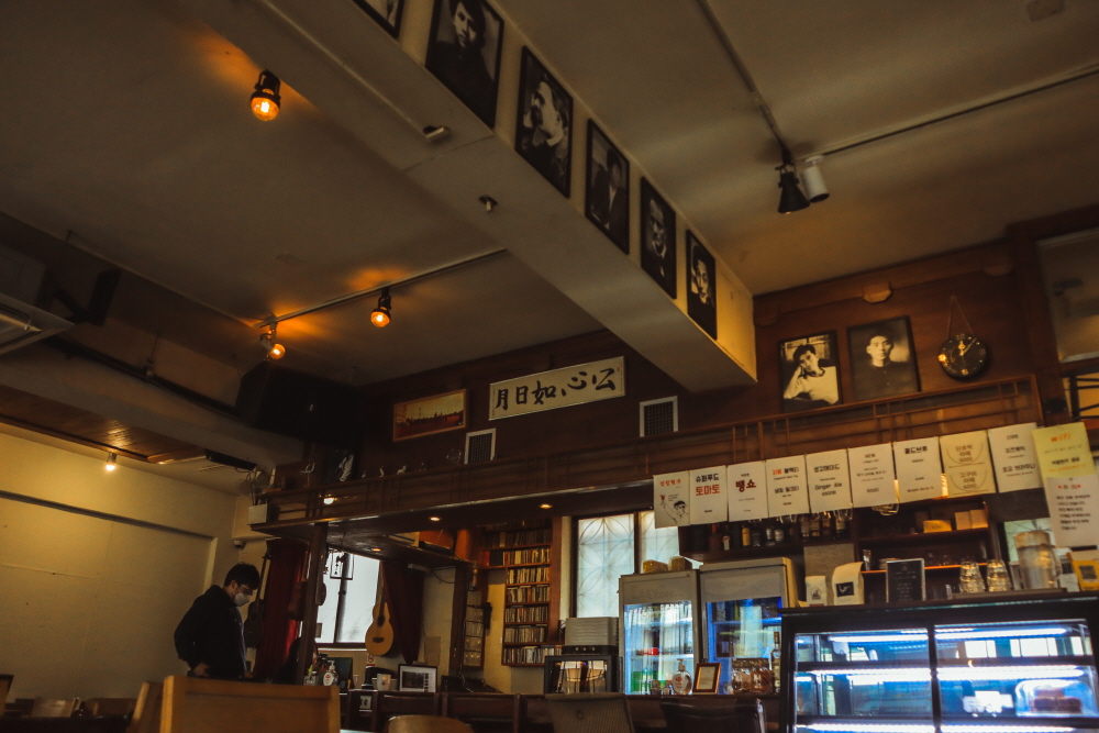 시간이 멈춘 듯하다. 레트로‘풍’ 카페가 아니라 레트로 카페다. 책을 읽고 싶고, 오래된 노래를 듣고 싶어지는 카페. 실제로 ‘이리카페’는 예술인들의 아지트다. 과거 산울림소극장 근처에 자리했다가 현재 상수동에 새롭게 둥지를 틀었다. 한쪽 벽면에는 엄청난 양의 디자인 서적이 꽂혀 있다. 화보집, 소설, 각종 잡지까지 한 장씩 넘겨보다가는 밤새워도 모자랄 양이다. 예술성이 이리도 흘러넘치는 공간, 이리카페 주인장은 실제로 시인이다.