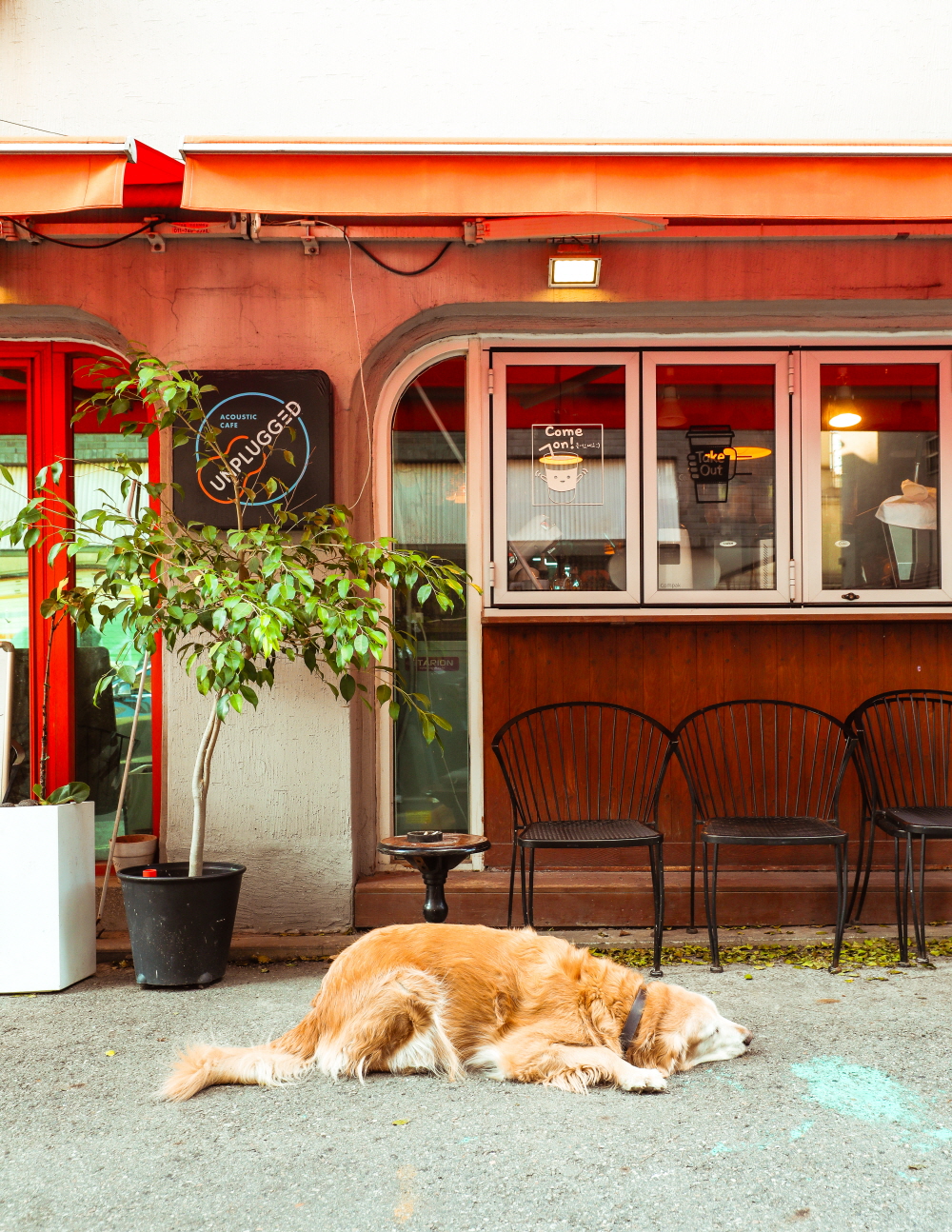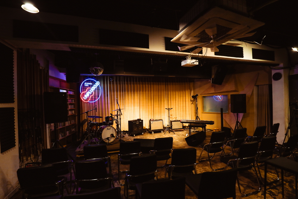듬직한 리트리버와 작은 푸들이 반겨 주는 공간이다. <싱어게인>으로 스타덤에 오른 가수 ‘이승윤’씨가 과거 이곳에서 자주 공연을 했다고 한다. 홍대에는 인디 음악가들을 위한 다양한 문화공간이 자리한다. ‘언플러그드’는 홍대 인디 음악씬에서 빼놓을 수 없는 중요한 공간이다. 1층은 커피와 빵, 저녁에는 술을 즐길 수 있는 카페로 운영된다. 지하로 발걸음을 옮기면 다양한 인디 음악가들의 공연을 볼 수 있다. 공연장 겸 카페인 셈이다. 카페 내부에서는 인디 가수들의 앨범과 굿즈도 함께 만나 볼 수 있다. 잔잔한 어쿠스틱 노래가 공간을 감싼다. 차분하게 진정되는 공간이다.
