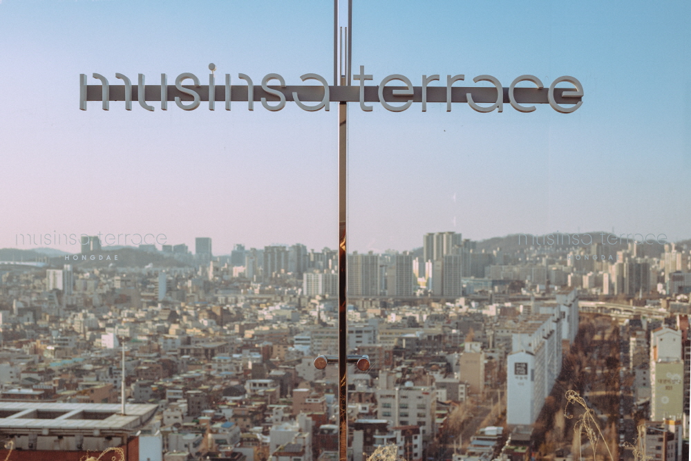 홍대 부근 최고의 전망대. 무신사 테라스는 AK&홍대 건물의 17층에 위치한다. 온라인 패션 플랫폼 ‘무신사’의 최초 오프라인 숍이다. 사방이 유리로 된 널찍한 공간을 곡선의 벽으로 분리한 구조가 전형적인 쇼핑몰과는 사뭇 다르다. 흰 여백에 무심한 듯 배열된 디스플레이가 매력적이다. 마치 미술관처럼 느껴지기도 한다. 결제와 배송은 제품마다 달린 QR 코드를 무신사 앱으로 인식해 진행한다. 쇼룸 옆 카페 ‘테라스 키친’에서 커피를 마실 수도 있다. 유리창 밖의 ‘테라스 파크’로 나가면 서울이 한가득 내려 보인다. 달콤했던 하루를 마무리하기 제격이다.