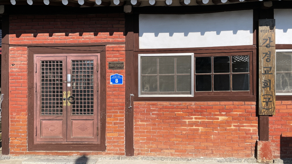 옥녀봉과 이어진 골목에는 근대문화유산인 (구)강경교회가 자리한다. 한옥 형태의 예배당이 초기 기독교 건축 양식을 엿보게 한다. 1918년부터 40여 년간 성결교회 예배당으로 사용했으며 1956년에 자리를 옮겼다. 예배당 중간에 하얀 천을 걸쳐 남녀 신자의 좌석을 구분해둔 것이 눈에 띄는데, ‘남녀칠세부동석’을 철칙으로 삼았던 옛 사람들의 생활문화를 그대로 보여준다.