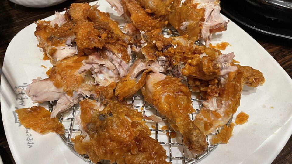 닭을 통째로 튀겨낸 시골통닭은 테이블에 내놓을 때는 먹기 좋게 조각조각 뜯어서 나온다. 통닭이 이렇게 맛있을 수 있나 싶을 정도로 바삭하고 부드러워 그야말로 쉴 새 없이 먹게 된다. 접시를 다 비울 때까지 입안에 촉촉함이 가시지 않는다. 한 입 맛보면 왜‘백숙통닭’이라는 별칭이 붙었는지 이해가 된다. 의외로 통닭과 단짝은 떡볶이이다. 매콤달콤한 떡볶이가 살짝 감도는 느끼함을 놓치지 않고 잡아준다.